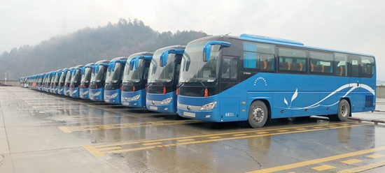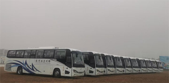 1月13日,11辆配套玉柴YCK08发动机的苏州金龙12米客运车交付徐州客户。