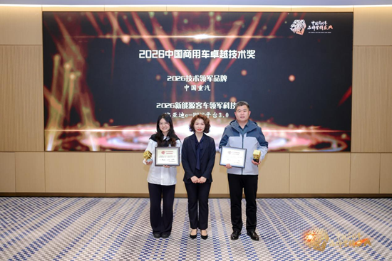 在技术与服务领域,盛典聚焦技术创新与服务升级,将其作为构建行业新质生产力的关键支撑。其中,中国重汽、比亚迪e-BUS平台3.0分别荣获“2026技术领军品牌”和“2026新能源客车领军科技”奖项;安徽安凯汽车股份有限公司、中车时代电动汽车股份有限公司则以优质服务体系脱颖而出。这充分说明,行业在关注技术水平发展的同时,也注重向“全生命周期服务”转型,通过技术创新、构建无忧服务体系双重发力,为用户创造更大价值。